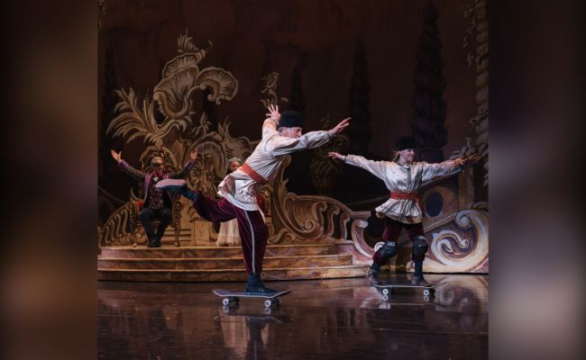 Также 57-летний скейтбордист опубликовал видеозапись своих «выездов» на сцену. В первой части балета он пронесся на скейте мимо дома героини, также он выезжал на сцену под русский танец (трепак). В одной из сцен к нему присоединилась 15-летняя скейтбордистка Кейтлин Уэст, уточняет Daily Mail.