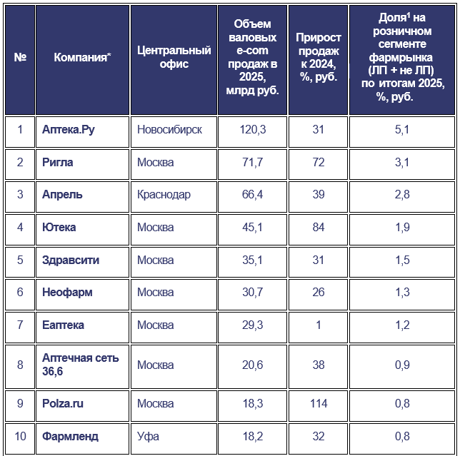 Топ-10 аптечных сетей и объединений по доле продаж через собственные онлайн-сервисы по итогам 2025 года