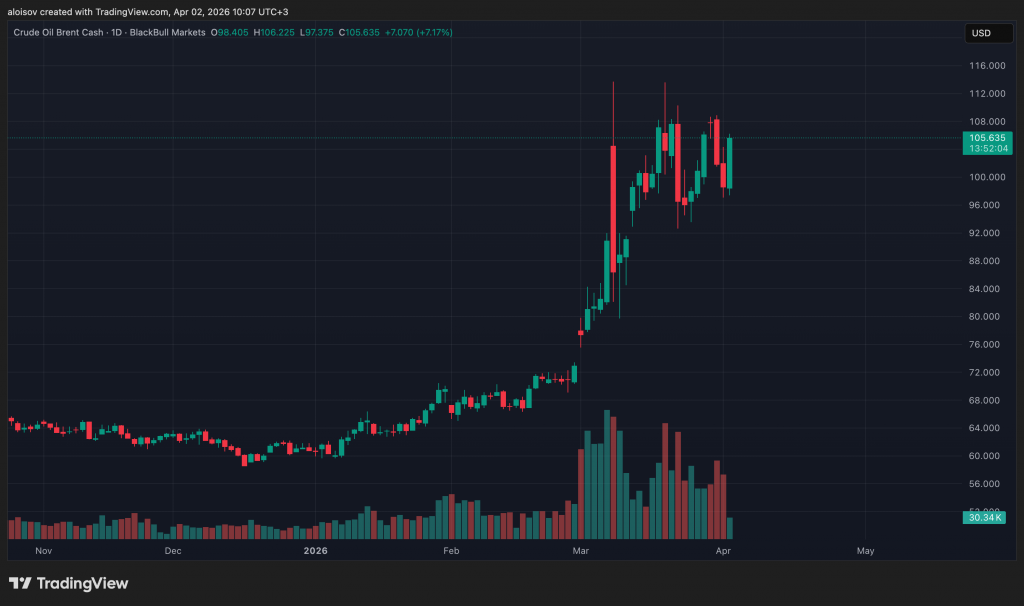 Геополитика Ближнего Востока давит на рынки уже несколько месяцев. 31 апреля кКотировки нефти несколько снизились после слов Трампа о скором завершении войны, однако новое выступление президента вернуло нефть выше $100: по данным на момент публикации, баррель торговался по $105,6.