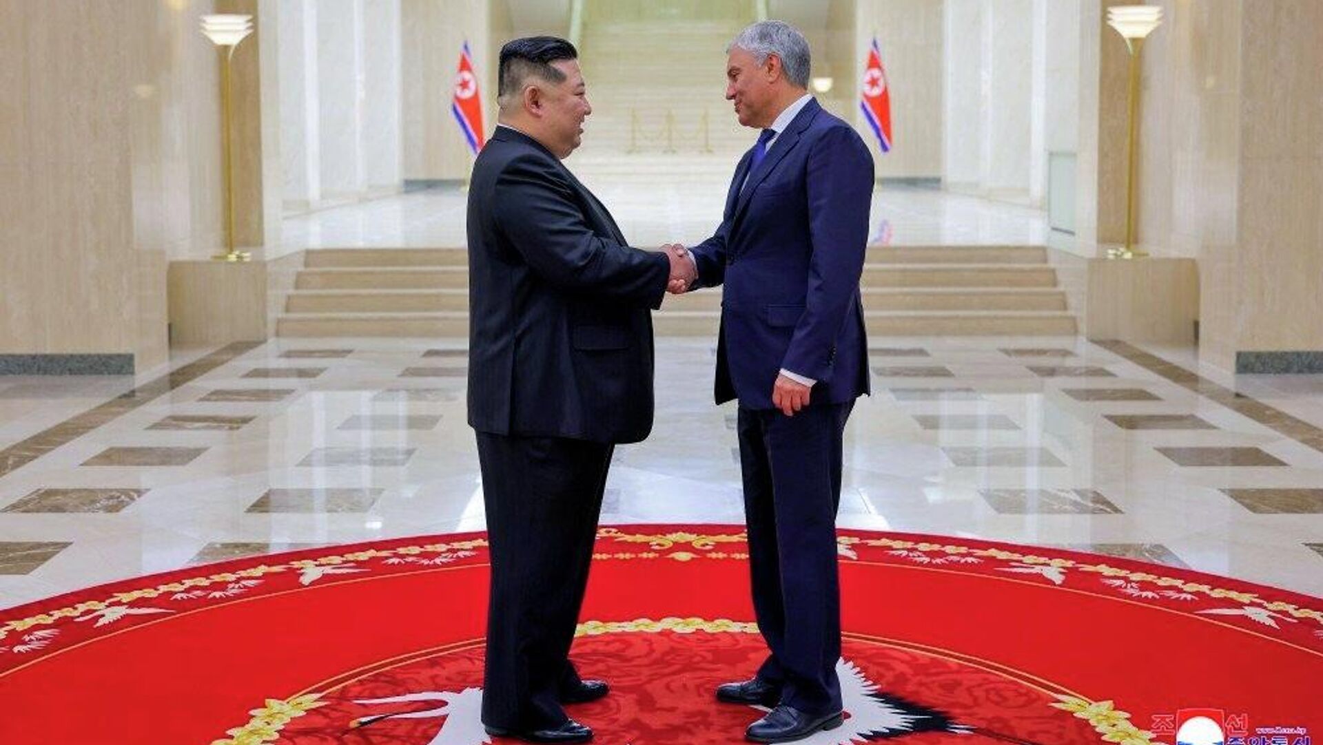 Председатель Госдумы России Вячеслав Володин передал председателю государственных дел КНДР Ким Чен Ыну приветствие от российского лидера Владимира Путина и поблагодарил за поддержку в освобождении Курской области.